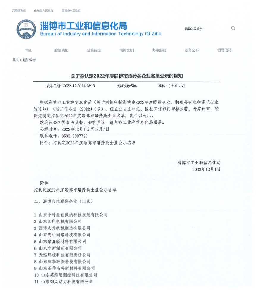 2022年12月1日,淄博市工業(yè)和信息化局公布了2022年度淄博市準(zhǔn)瞪羚類(lèi)企業(yè)名單,山東津摯環(huán)保科技有限公司名列其中。為深入踐行新發(fā)展理念,打造一批哪吒企業(yè)、瞪羚企業(yè)和獨(dú)角...